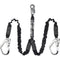 The EL2 is a twin legged 1.8meter Elasticated lanyard with a quick clip connector to attach to the users EN361 harness and two SCAF1 scaffold hook to attach to the anchoring point. The elasticated webbing compacts the lanyard to 1.5meters when not fully extended reducing the risk of tangling or catching. When extended the lanyard is 1.8 meters in length. The twin leg enables the user to be connected to an anchoring point at all times when moving between one anchor point to another. For example, when installing scaffolding or climbing. The Quick clip connector makes attaching to the harness much easier. The Shock absorber is intended to reduce the force applied to the user in the event of a fall. Must be used as part of a fall arrest system.